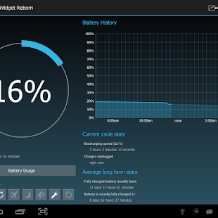 New stylish battery widget with advanced functionality. Holo themed design perfectly matches Android 4.x but you can enjoy it also on Android 2.3 (thanks to HoloEverywhere library)