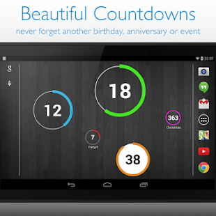 • Resizable countdown widget (supported only on Android 4.1 and up)